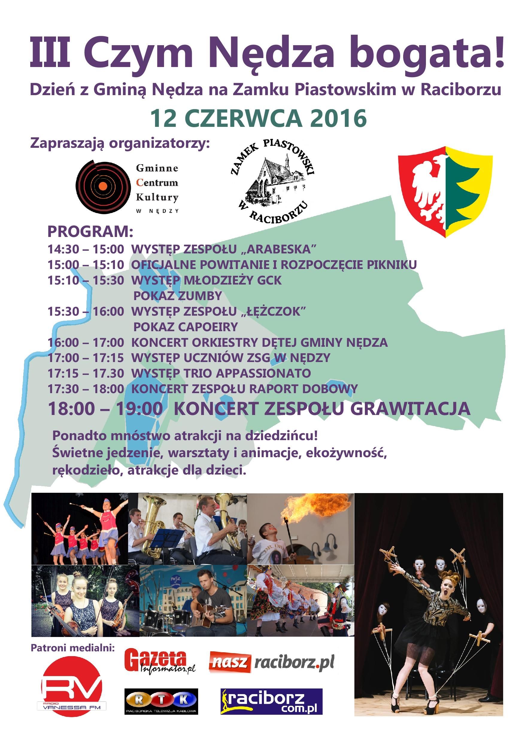 Sporo będzie się działo na samej scenie, nie mniej na płycie dziedzińca. 12 czerwca na dziedzińcu raciborskiego zamku gmina Nędza pokaże co ma najlepszego! Na imprezę zaprasza Gmina Nędza, Gminne Centrum Kultury oraz Zamek Piastowski w Raciborzu.