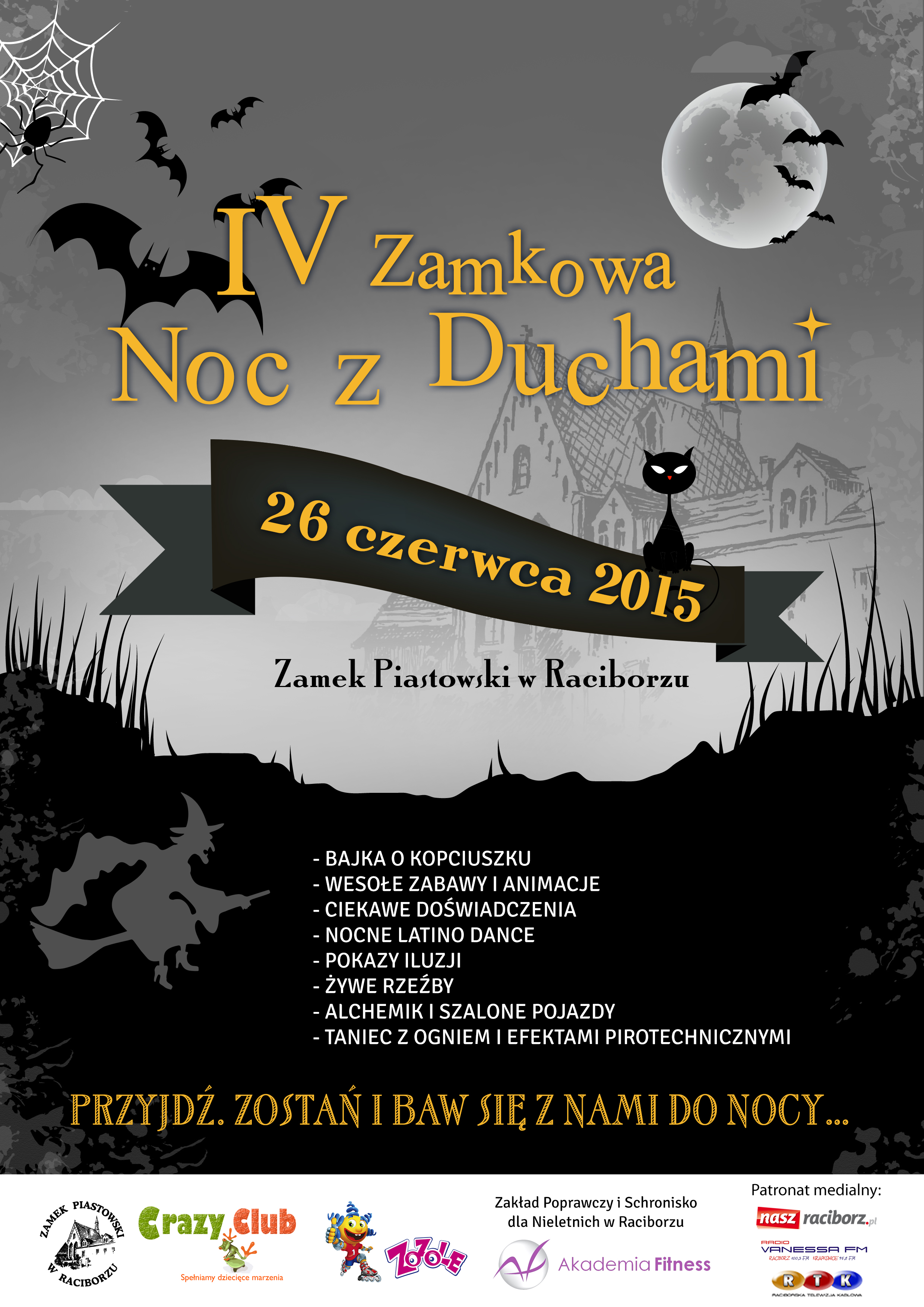 26 czerwca Zamek Piastowski w Raciborzu zaprasza na IV Zamkową Noc z Duchami. Tradycyjnie już zakończy rok szkolny i będzie dobrym wstępem do letnich wakacji. Tym razem zapraszamy od godz. 18.30. Jak zawsze nie zabraknie fire-show, występów na scenie, stoisk gastronomicznych, zwiedzania zamku późną porą, szczypty horroru a przede wszystkim dobrej zabawy dla dzieci i osób dorosłych. Mile widziane wszelkie przebrania. Sprawdź jaki przygotowaliśmy program!